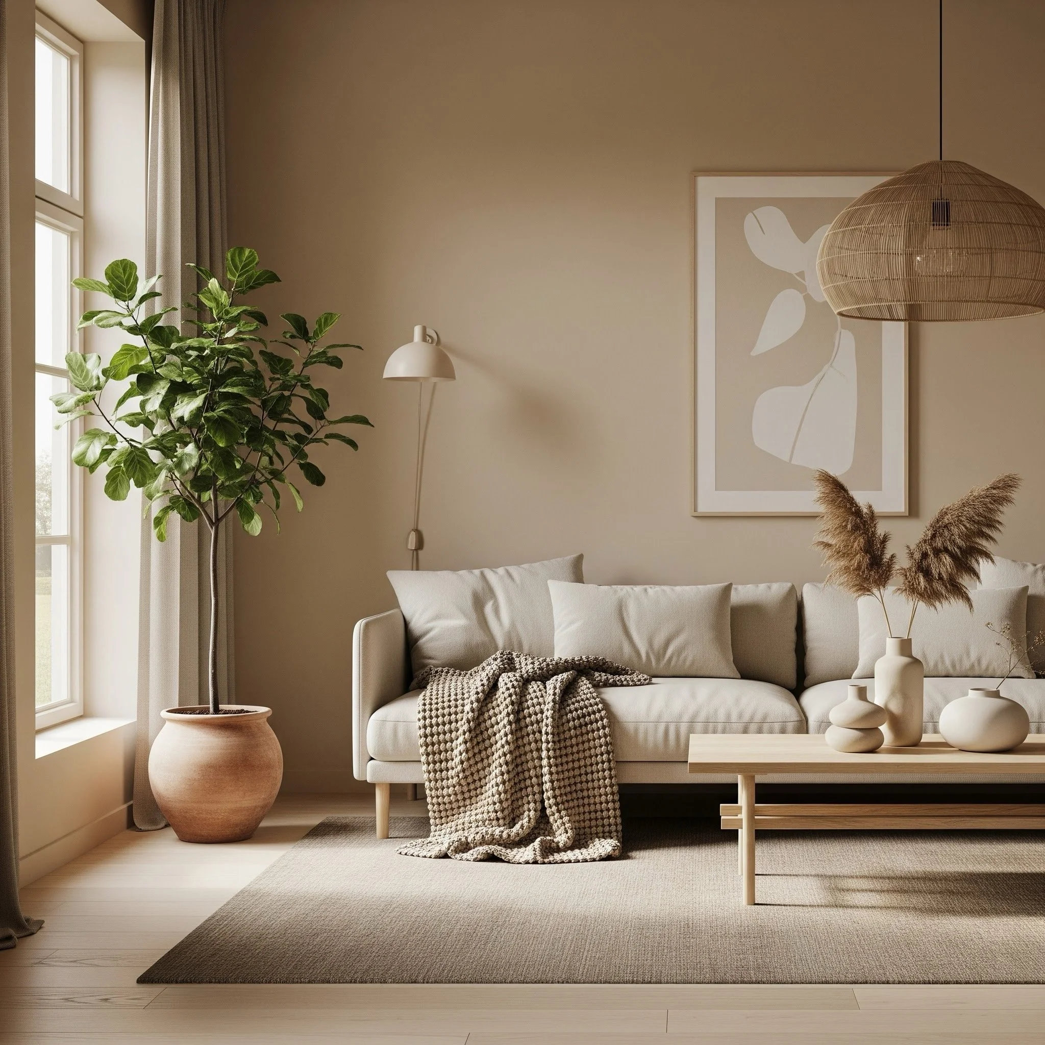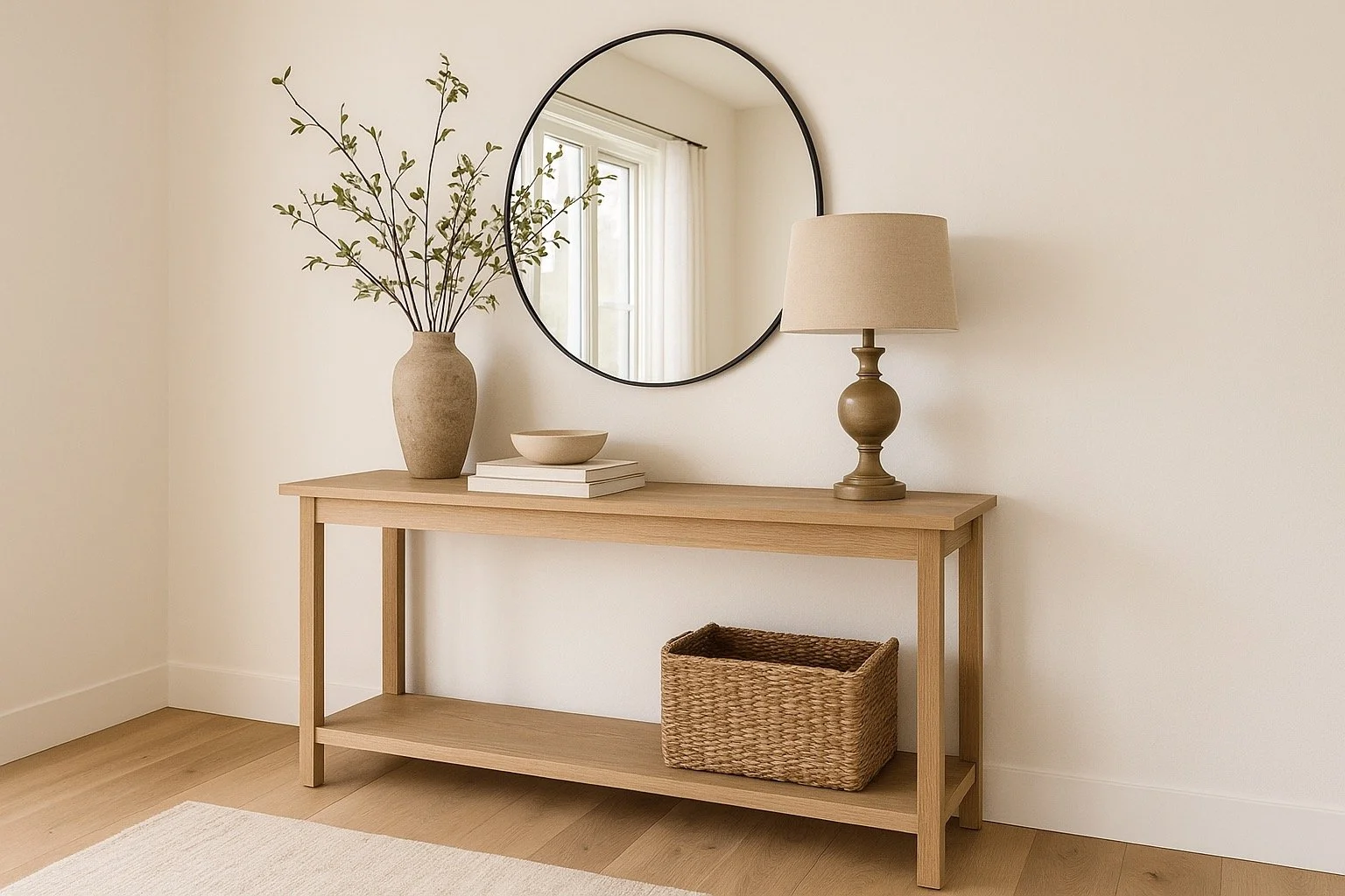 Calm, collected interiors grounded in natural materials — staging and design that feels like home