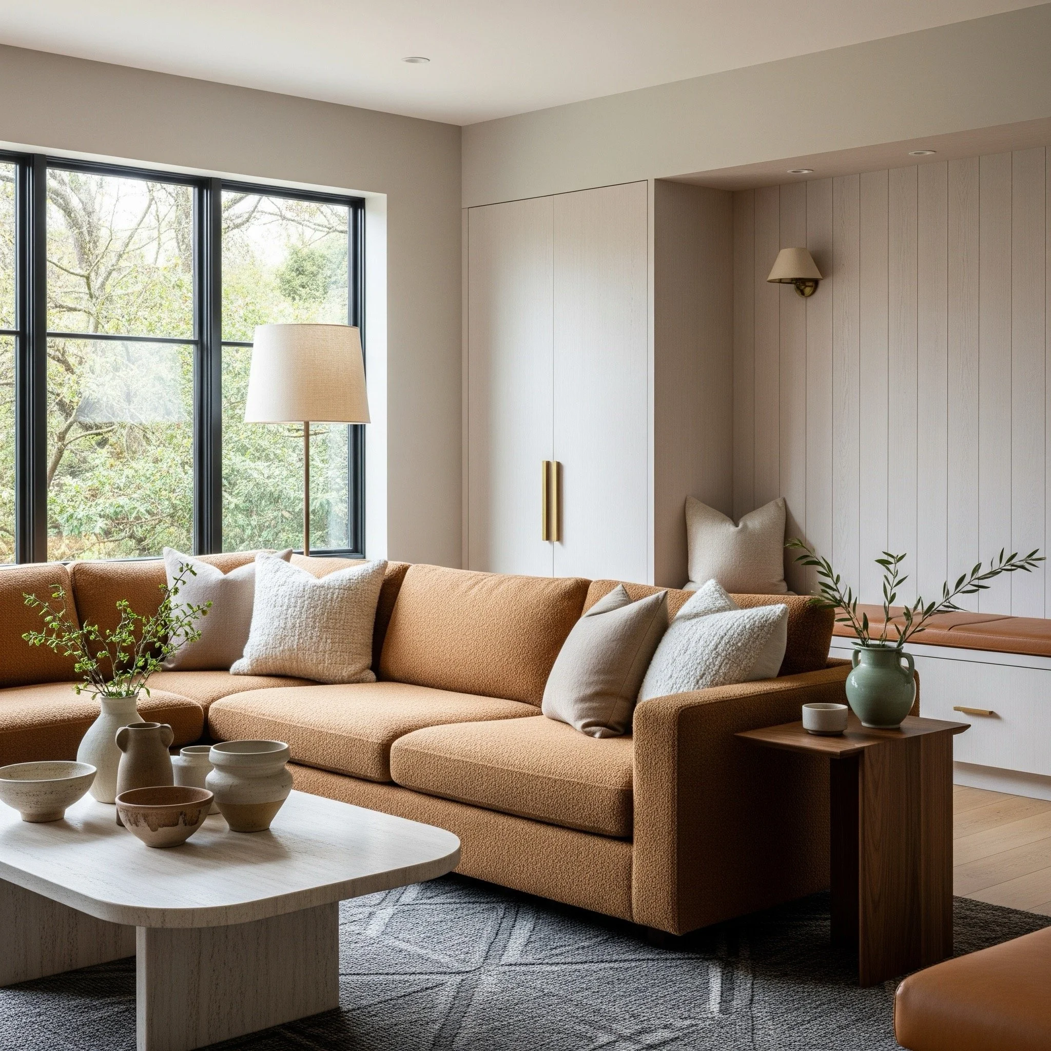 Calm: Layered neutrals, balanced contrast, and just‑right lighting.